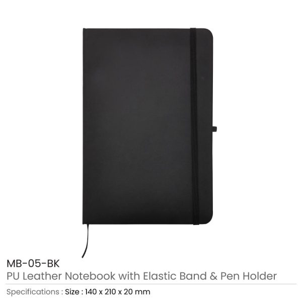 A5 PU Leather Notebooks with Elastic Band, Calendar, & Pen Holder