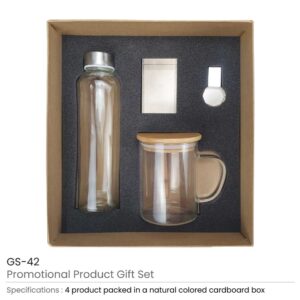 Eco-Friendly Gift Sets GS-42: Contains 4 products as listed beside. packed in a cardboard gift box with a cushion inside for product protection and better presentation.