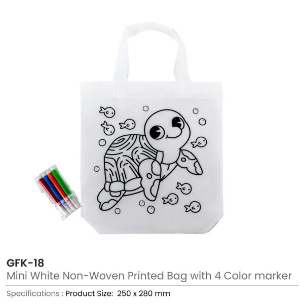 Mini Non-woven Bags 100GSM with 4Color Markers & Imprinted Turtle Outline