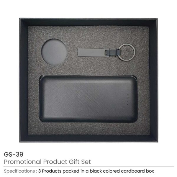 Promotional Gift Sets GS-39: These kinds of sets are usable and elegant. they are promotional gifts for your business or company. this pack Contains 3 products as listed beside and packed in a black gift box with a cushion inside for product protection and better presentation. Promotional gift sets are so luxed for promoting your branding. if you present at fairs they can be the best options to show your branding. Technology is always attractive and usable for clients.