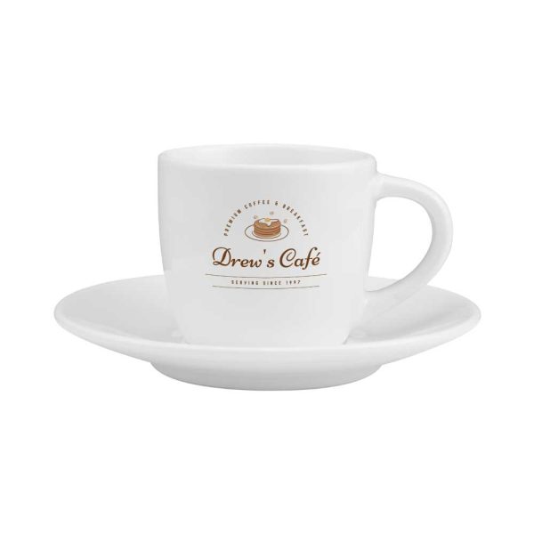 White Sublimation Cup and Saucer, 100 ml  Capacity with Branding Options.